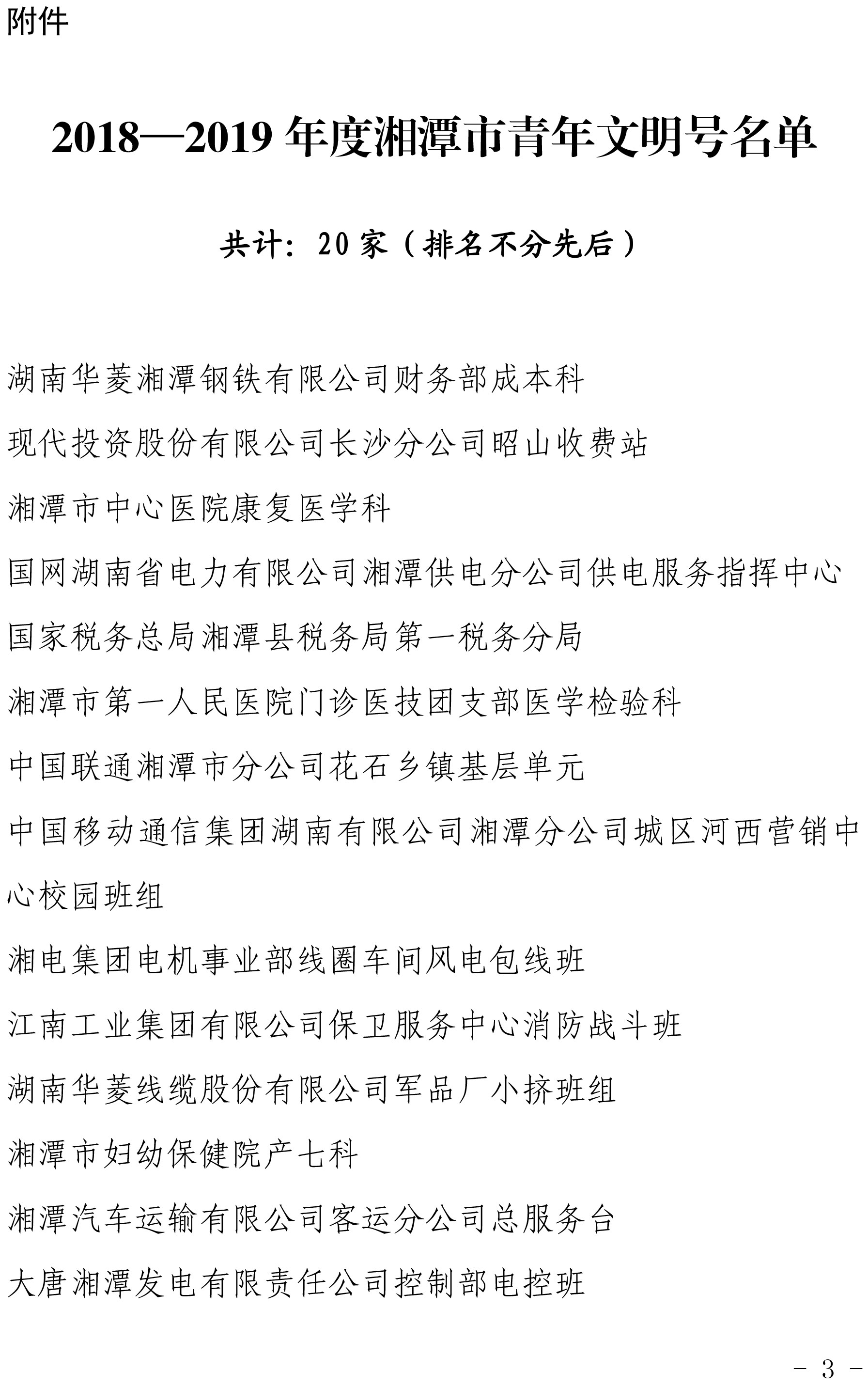 為樹立典型,表彰先進(jìn),進(jìn)一步激發(fā)湘潭市團(tuán)員青年立足本職建功立業(yè)的積極性和創(chuàng)造性,深入推動青年文明號創(chuàng)建工作,經(jīng)層層推薦、交叉檢查,湘潭市青年職工工作委員會從 25個申報集體中,認(rèn)定湘潭華進(jìn)重裝有限公司制造部等 20 個青年集體為 2018-2019 年度湘潭市青年文明號。