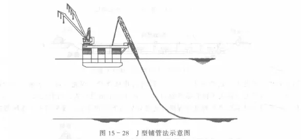 為了適應(yīng)鋪管水深的不斷增加,20世紀(jì)80年代以來J型鋪管法發(fā)展了起來,它是進(jìn)行深水和超深水的種海底管道鋪設(shè)的最適合方法?,F(xiàn)階段,J型鋪管法主要有2種類型:即鉆井船J型鋪管法和帶傾斜滑道的J型鋪管法。在鋪設(shè)過程中,通過借助調(diào)節(jié)托管架的管道和傾角承受的張力來改善懸空管道的受力狀態(tài),達(dá)到安全施工的目的,如圖3所示。