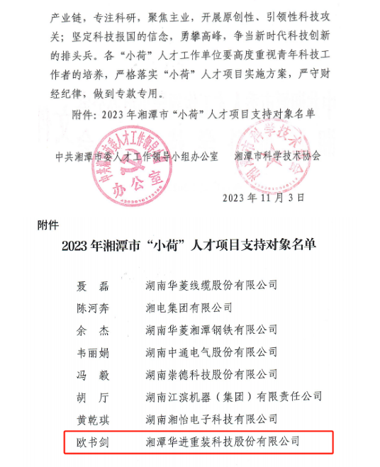 歐書劍同志,1989年出生,工程師,中共黨員,自2013年進入華進公司,主攻金屬管材裝備設(shè)計開發(fā)與制造工藝。他立足崗位,勇于創(chuàng)新,努力提升專業(yè)知識,積極主動鉆研業(yè)務(wù),緊緊圍繞公司生產(chǎn)經(jīng)營目標開展質(zhì)量控制、技術(shù)研發(fā)和攻關(guān)工作,曾獲得韶山市“映山紅”人才等榮譽。